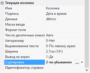 7.3.2.10. выделить колонку dttmcr и установить в поле Сортировка значение 2-по убыванию;
