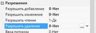 7.3.2.11. в полях Разрешить добавление, Разрешить изменение, Разрешить удаление выбрать значение 0-Нет;