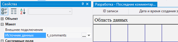 7.3.3.2. в поле Источник данных указать объект базы данных - таблицу t_comments;