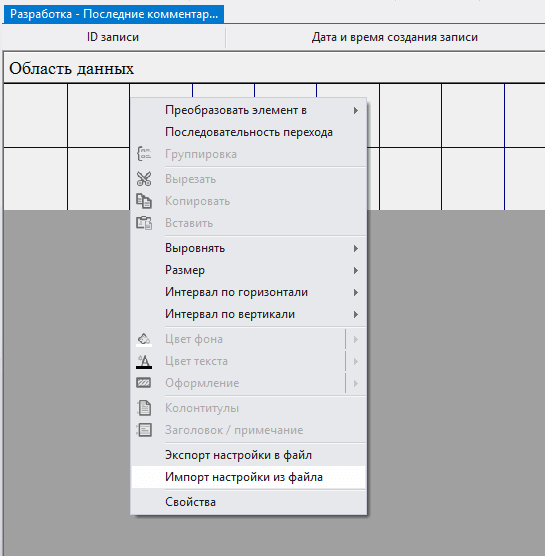 7.3.2.14. вызвать контекстное меню нажатием правой кнопки мыши в области данных;