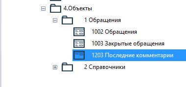 7.5.3.3. в поле Объект выбрать таблицу 1203 Последние комментарии.
