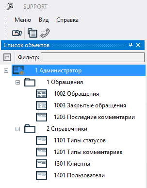 Слева отобразится рабочий стол и список доступных объектов.