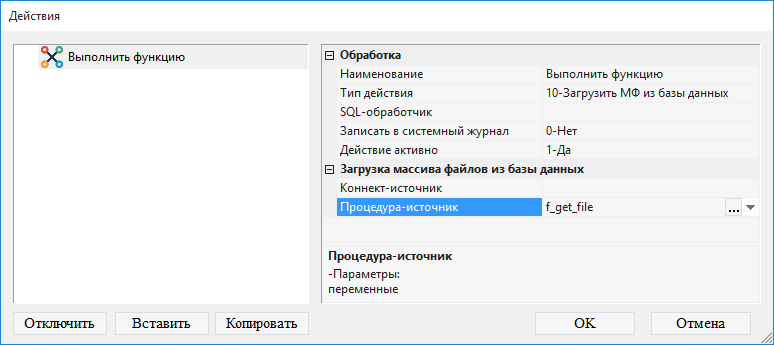 8.4.1.10. в поле Процедура-источник выбрать функцию f_get_file;