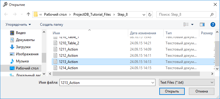 8.5.1.22. в появившемся окне указать путь к файлу 1213_Action;
