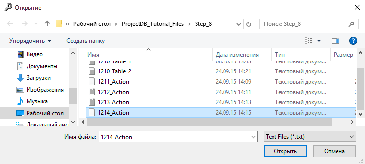 8.6.1.22. в появившемся окне указать путь к файлу 1214_Action;