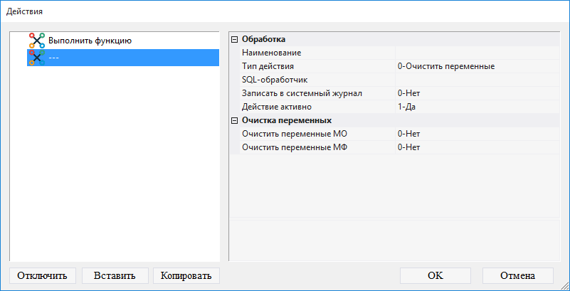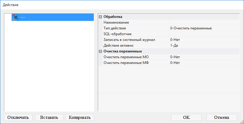 Внимание: если Вы хотите изучить механизм настройки действия детально, выполните шаги 8.6.1.5 - 8.6.1.17. Если Вы уже знакомы с тем, как осуществляется настройка действия, пропустите шаги 8.6.1.5 - 8.6.1.17 и перейдите к шагу 8.6.1.18.