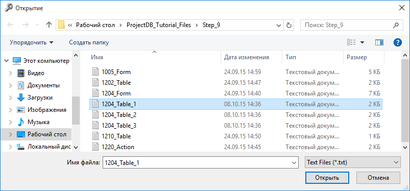 9.2.2.18. в появившемся окне указать путь к файлу 1204_Table_1;