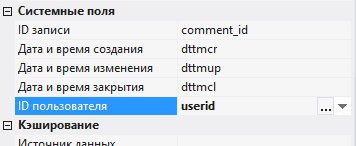 9.2.3.3. в системных полях ID записи, Дата и время создания, Дата и время обновления, Дата и время закрытия, ID пользователя выбрать поля из таблицы - comment_id, dttmcr, dttmup, dttmcl, userid;