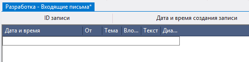 9.2.2.5. выбрать каждую из колонок нажатием левой кнопки мыши по любой строчке таблицы, ввести в поле Подпись отображаемое имя колонки - Дата и время, От, Тема, Вложение, Текст, Диагност. сообщение соответственно;