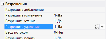 9.2.2.11. в полях Разрешить изменение, Разрешить удаление выбрать значение 1-Да;