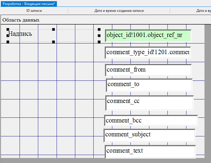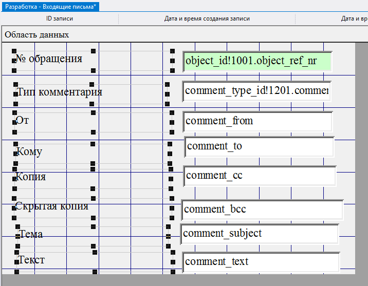 9.2.3.17. в поле Данные для каждого добавленного поля выбрать соответственно comment_from, comment_to, comment_cc, comment_bcc, comment_subject, comment_text;