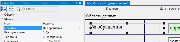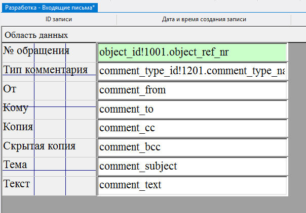 9.2.3.8. ввести значение object_id!1001.object_ref_nr, поскольку данное поле будет ссылаться на объект 1001 Обращения (основа) и отображать номер выбранного обращения при измененини комментария;