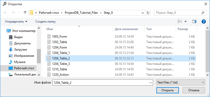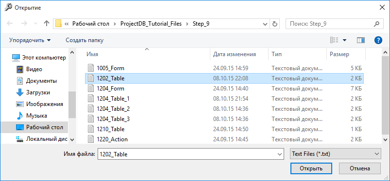 9.4.1.15. в появившемся окне указать путь к файлу 1202_Table;