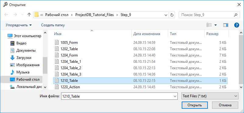 9.4.4.12. в появившемся окне указать путь к файлу 1210_Table;